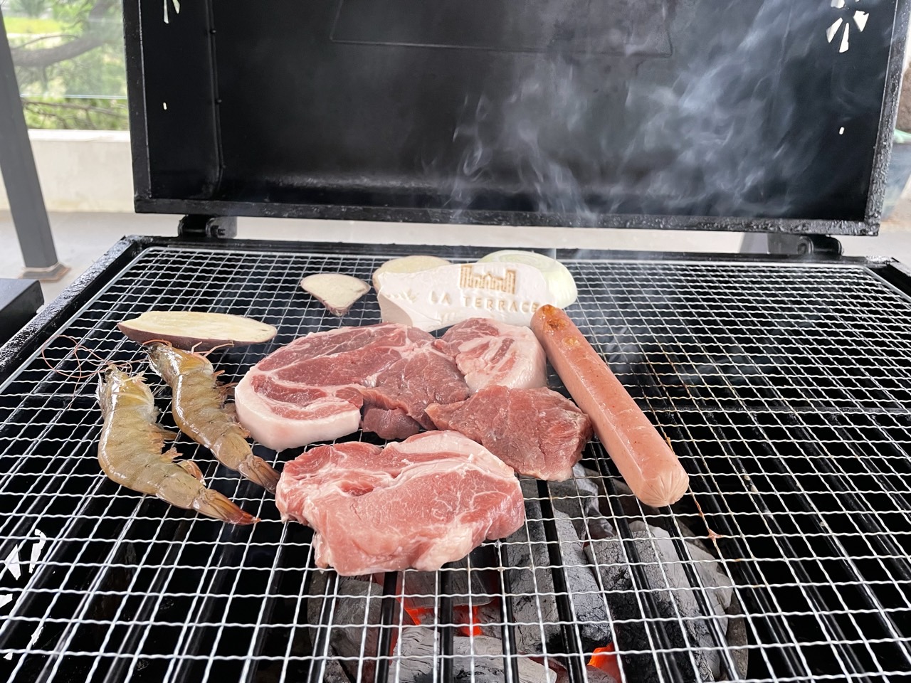 그릴 안에 숯이 밑으로 내려가 있어서 고기가 타지 않아