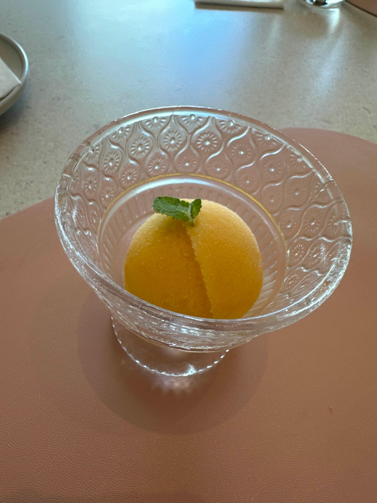 마지막으로 나온 후식 애플망고셔빗은 달콤하고 시원하고 상큼했어요.